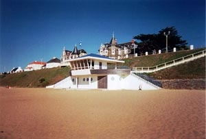 En second lieu, Tharon-Plage, la station balnéaire qu'un architecte nantais, M. Ernest Chevrier, au début du siècle, eut l'idée de faire naître des sables et où ne tardèrent pas à venir profiter de sa magnifique plage, les touristes de plus en plus nombreux.